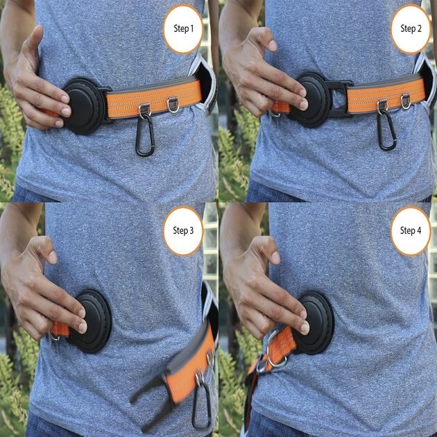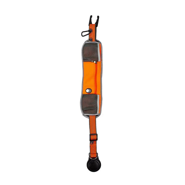 - Adjustable belt fits most adults and includes a metal carabiner.