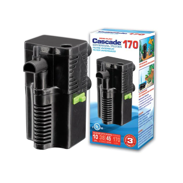 Help your finned friends breathe easily with the Penn-Plax Cascade 170 Internal Aquarium Filter! This filter is designed to provide filtration and aeration above and below the surface. It is fully submersible and provides physical, chemical, and biological filtration for fish tanks. The activated carbon cartridge removes harmful chemicals, toxins, odors, and other contaminates from water. It includes an internal sponge that optimizes colonization of beneficial anaerobic bacteria. It runs on a 110-volt electrical current, pumps up to 45 gallons per hours, has an adjustable and directional water flow output—and a spray bar option that will distribute water evenly to aid aeration. The round directional flow spout has a connector for attaching flexible tubing to drive water fountains or other accessories. It also includes a mount and suction cups that can be used to place filter horizontally.