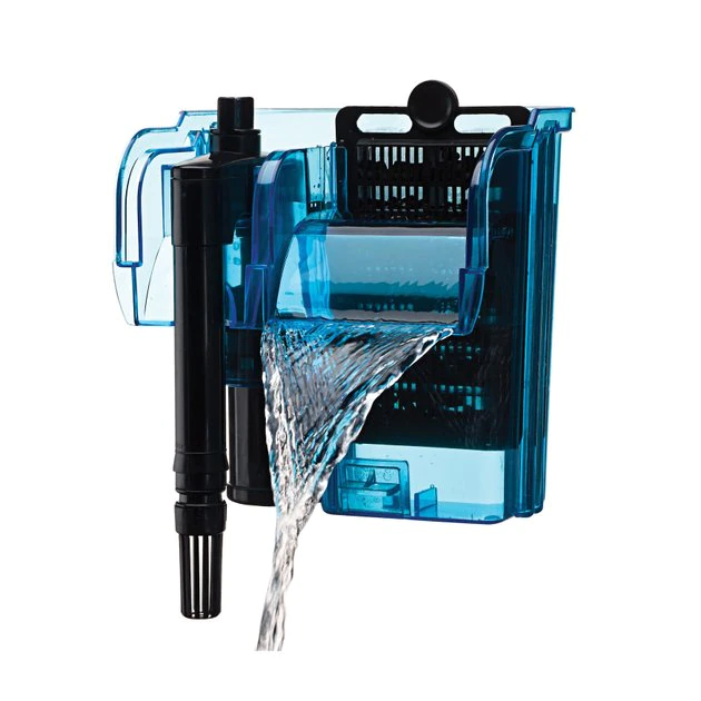 - Hang on filter fits over the edge of the tank glass and pumps up to 80 gallons per hour.