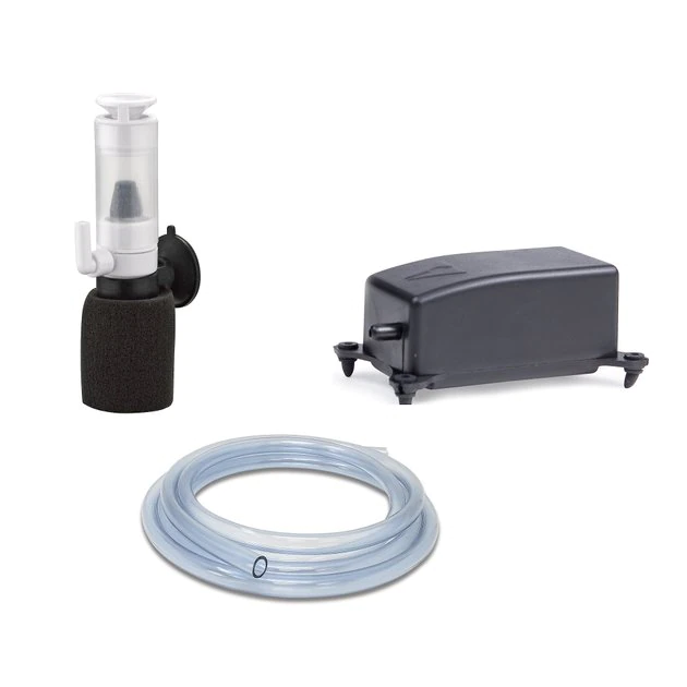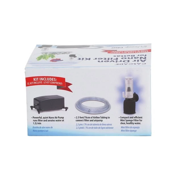 - The Cascade Nano Air Pump pumps oxygen into your fish tank at a rate of 1.2 liters per minute and easily connects to an electrical outlet through a power cable.