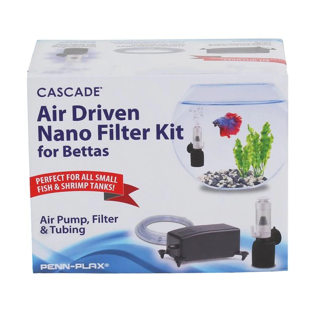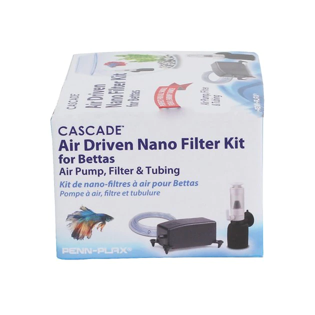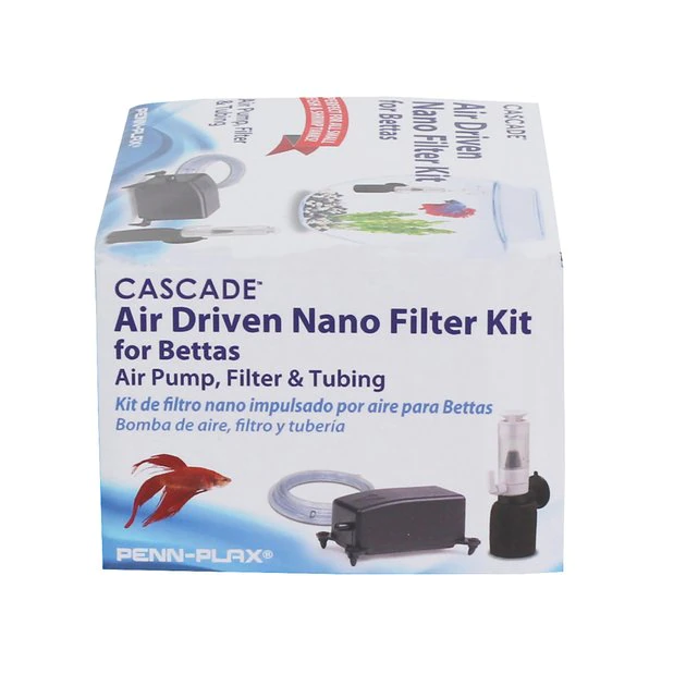 Make your aquatic habitat even “betta” with the Penn-Plax Nano Filter & Air Pump! This kit—which includes the Nano aquarium air pump, airline tubing and mini sponge filter—helps improve the quality of the water through quality filtration. The Cascade Nano Filter and Air Pump work together to circulate continuous, clean water into the tank. The Mini Sponge Filter boosts the colonization of healthy bacteria and traps large particles floating in the water. All in all this kit is fin-tastic for beginners or fish parents looking to improve their aquariums!