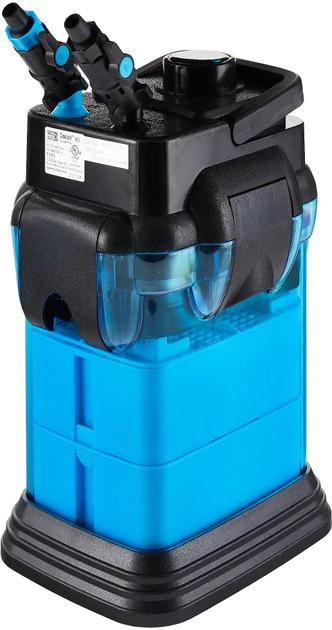The Penn-Plax Cascade Aquarium Canister Filter is an external filter that helps you meet a wide array of your aquarium’s filtration needs. It delivers powerful mechanical, chemical and biological filtration by combining the benefits of several types of filter media—all with one, handy canister filter. Each pump comes with large filter trays, startup filter media and input/output tubing so you can begin filtering right away. The large filter trays mean you can use more media, including Bio-Floss, Bio-Sponges, activated carbon and any combination you’d like. With a push-button primer, two 360-degree rotational valve taps, flow-rate control valves and hose clamps, this filter is easy to start and adjust. After just one day, you should see visible improvement in your tank’s water quality.