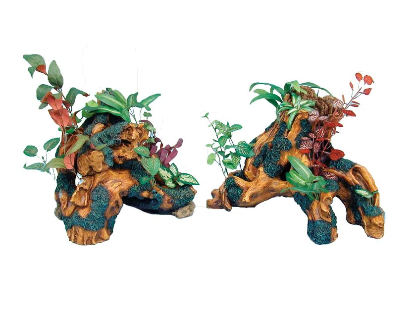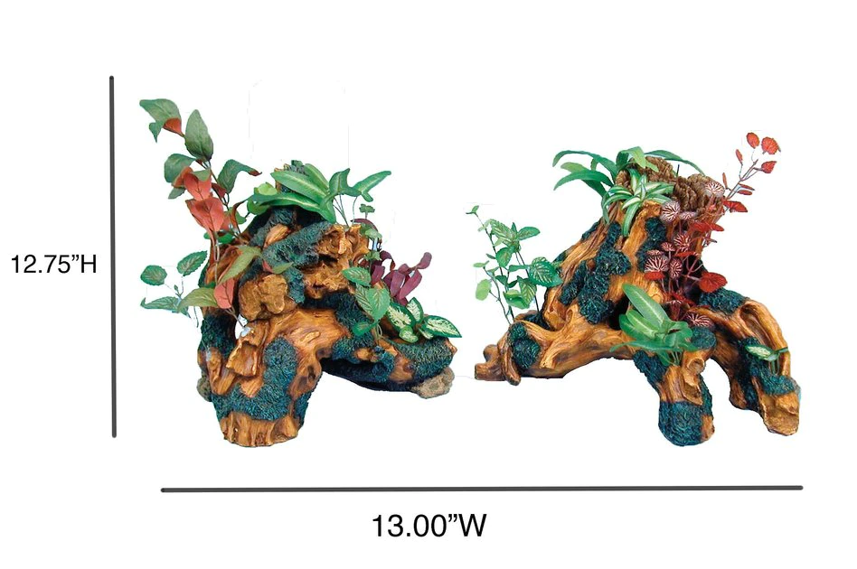 - Features natural-looking, life-life replicas of a driftwood trunk and aquatic plants.