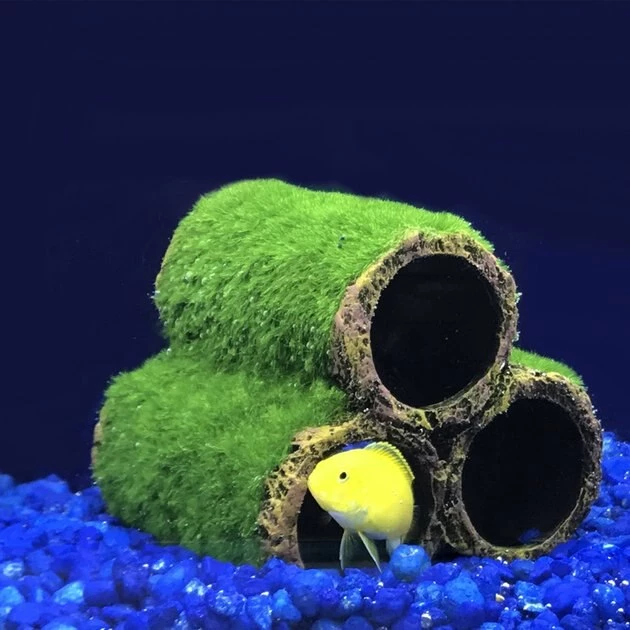 The Penn-Plax Hideaway Pipes Aquarium Ornament is a realistic, eye-catching accessory that can also help to keep your fishy friends content. This ornament of three stacked pipes is designed to let fish pass through and also acts as a hiding spot. Each of the pipes create individual territories for fish, potentially helping to reduce aggression. The pipes are made from durable, nontoxic resin that’s safe for saltwater and freshwater aquariums. If algae grows on it, you can easily wipe it down and rinse it off. Bright green moss colors on the pipes create a unique look, increasing your tank’s visual interest.
