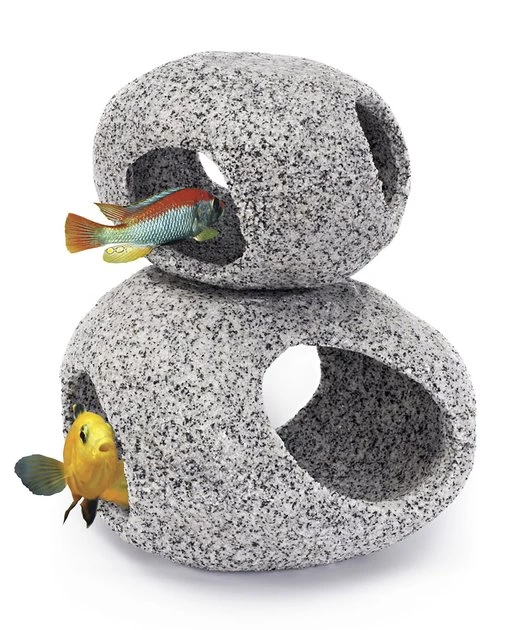 The Penn-Plax Large Stone Hideaways Aquarium Ornament set makes a highly realistic addition to your aquarium, while also giving your fishy friends an extra hideout. The two ornaments are crafted to look just like real granite and also feature swim-throughs. You can stack the stones in any design, giving your fishy friends plenty of areas to hide. This ornament set is perfect for cichlids, since they’re naturally territorial and need their own spaces. With potentially endless combinations, you can change things up. The ornament set is made from durable, nontoxic resin that’s safe for saltwater and freshwater aquariums. If algae grows on it, you can easily wipe it down and rinse it off.