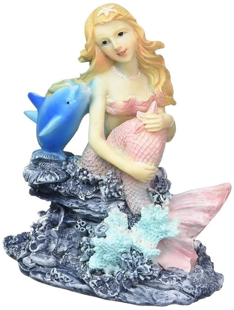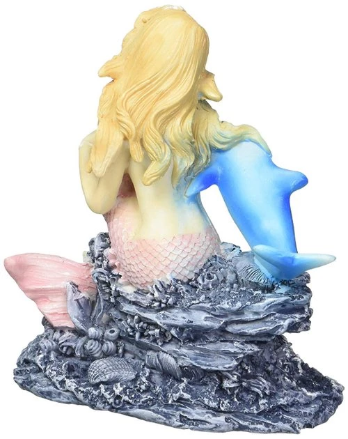 Pretty up your fishbowl with the Penn-Plax Mermaid Aquarium Ornament. It features a beautiful mermaid sitting on a coral reef with a blue dolphin friend. Suitable for both fresh and saltwater aquariums, this ornament is made of non-toxic, high-quality resin. Add a little allure to your tank with the Mermaid Aquarium Ornament from Penn-Plax.