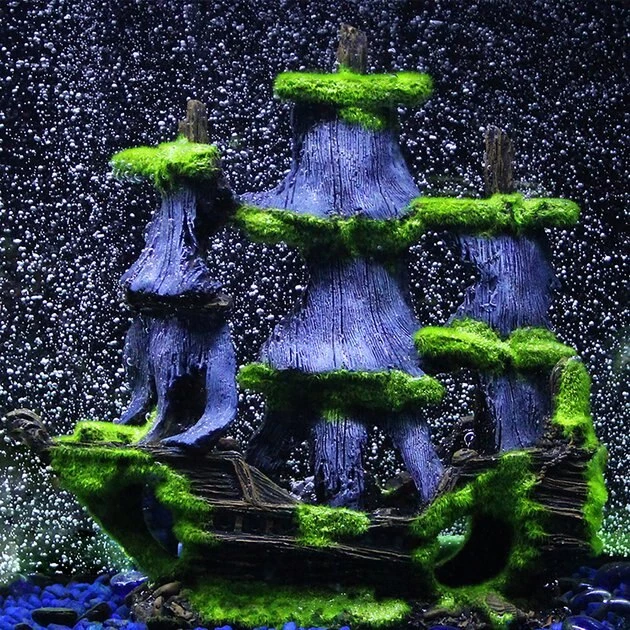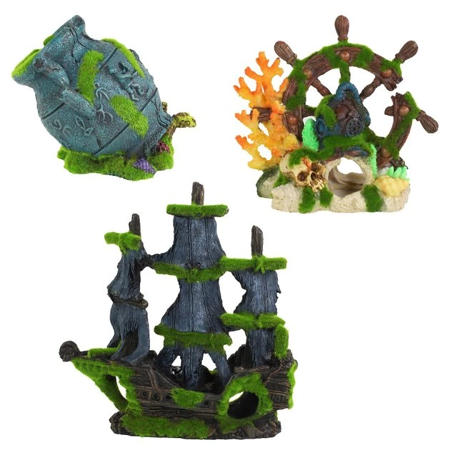 Add interest and variety to your finned friend’s underwater home with Penn-Plax Nautical Aqua-Flora, an assortment of fun resin decor that sprouts live plants. This nautical-themed kit includes a pirate ship, sunken urn and ships wheels. Once the resin figures are submerged, the plants will activate and the growing process begins—they’ll start to sprout within one week! The aquatic plants are designed to grow in most water conditions but will thrive in warm, filtered water under a plant-growth LED light. Best yet, there’s no upkeep required with this easy-to-maintain aquatic flora!