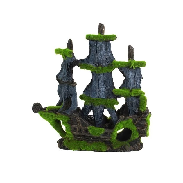 - Pirate ship, sunken urn and ship wheel resins create an engaging plant-scape.