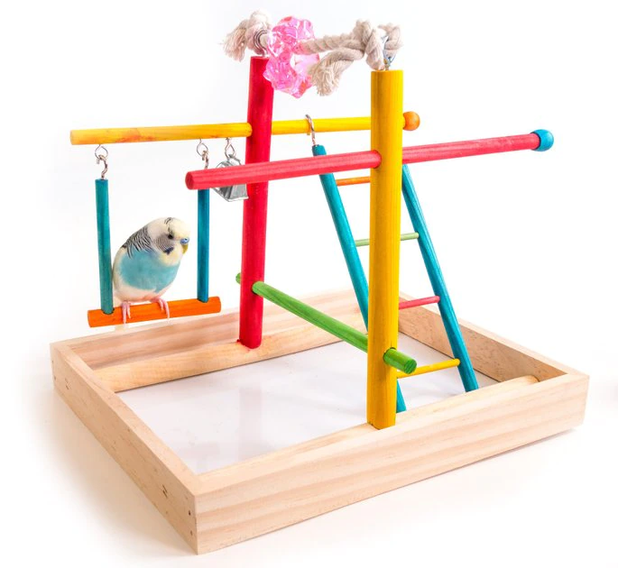 - This tiny bird gym is easy to assemble and encourages activity