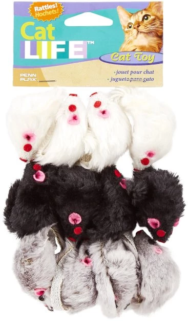 - 12 mice in each bag in 3 varying colors: black, gray, and white.