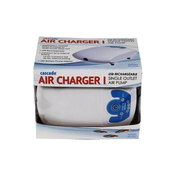 Help your finned friends breathe easily with the Penn-Plax Rechargeable Battery 1 Outlet Aquarium Air Pump! This pump provides a constant stream of oxygen to keep your tank aerated. It is battery operated to keep the oxygen flowing in the event of a power outage or when transporting. It can also be used to aerate bait and live catches during your next fishing trip! It features a noise-absorbent rubber base, LED battery power display, and recharges via a USB cable. Keep your scaly sidekick happy and healthy!