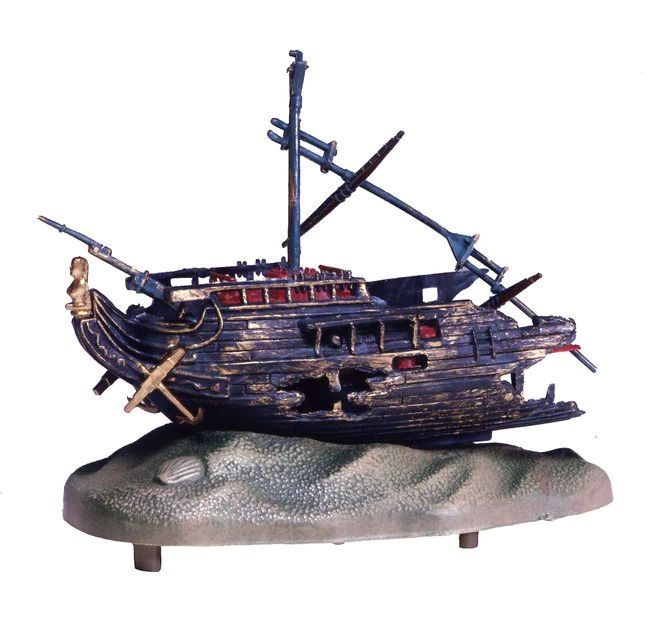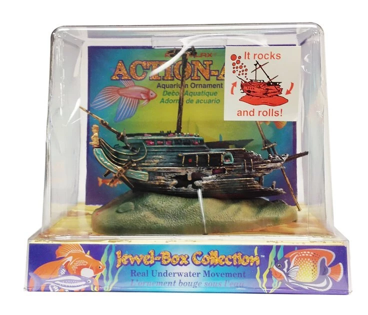- Ornament features moving shipwreck, which is driven by filtration and air bubbles.