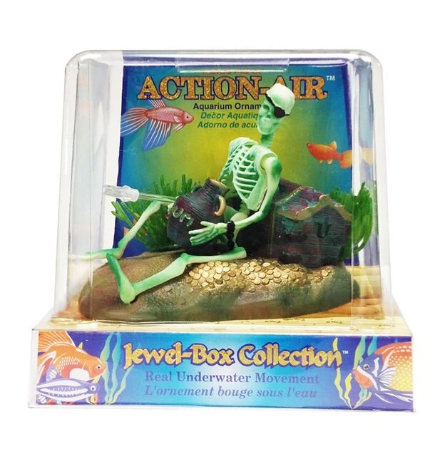 The Penn-Plax Skeleton Treasure Aquarium Ornament not only adds a touch of décor to your tank, but it also provides valuable aeration properties. The skeleton raises a jug up and down and moves as bubbles are generated for ongoing entertainment. Just connect it to a standard 3/16 airline from an air pump (sold separately), and sit back and watch. The ornament is made of a durable plastic resin that’s safe for freshwater and saltwater aquariums. This entertaining ornament is plenty of fun to watch, and you’ll be creating a healthier environment for your fishy friends, too.