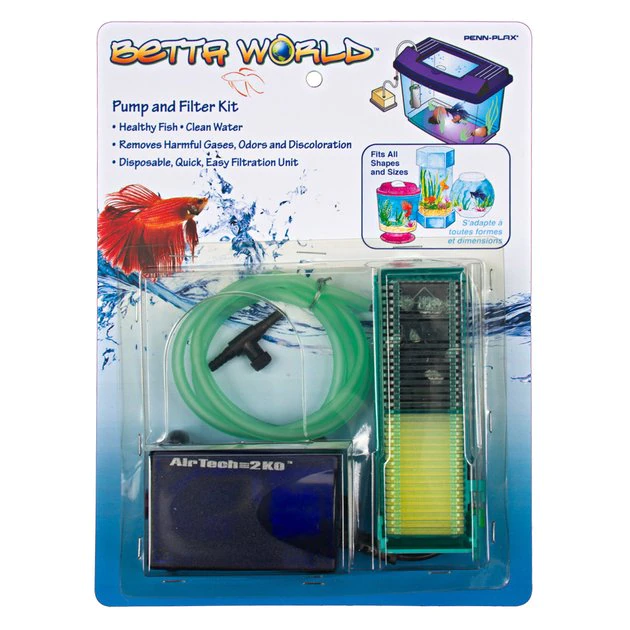 Help your finned friends breathe easily with the Penn-Plax Small World Ul Aquarium Filter & Pump! This easy-to-install kit includes a 110-volt AC air pump, filter, mounting bracket and tubing. The high-quality disposable filter cartridge (replacements sold separately) consists of carbon and zeolite for chemical filtration combined with a bio-foam sponge. The zeolite crystals eliminate ammonia while the activated carbon removes harmful gases and odors. The bio-foam helps promote biological filtration, leaving water crystal clear. Designed specifically for use in small tanks up to three gallons. Keep your scaly sidekick happy and healthy!