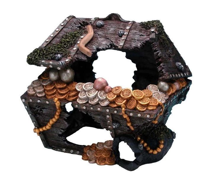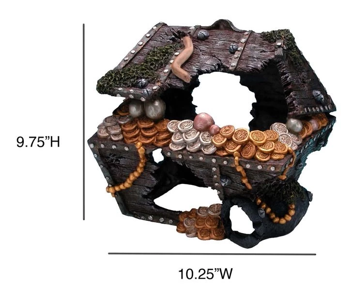 Your finned friends can go hunting for treasure with the Penn-Plax Treasure Chest Aquarium Decor. This extra-long and beautifully detailed ornament resembles an ancient sunken treasure chest lost at sea. It’s crafted from aquarium-safe resin and includes several holes for your fish to swim through, hide in and explore. It’s large size makes for an eye-catching main attraction in your aquatic landscape or works as part of a bigger arrangement. It’s a great way to add a sense of high-seas adventure to your aquarium habitat!