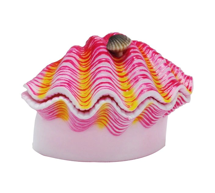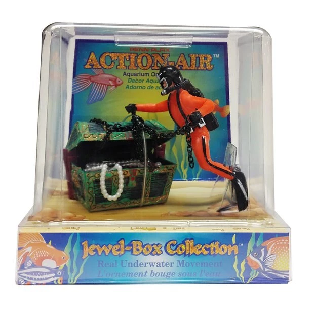 - Ornament features moving clam shell driven by filtration and air bubbles.